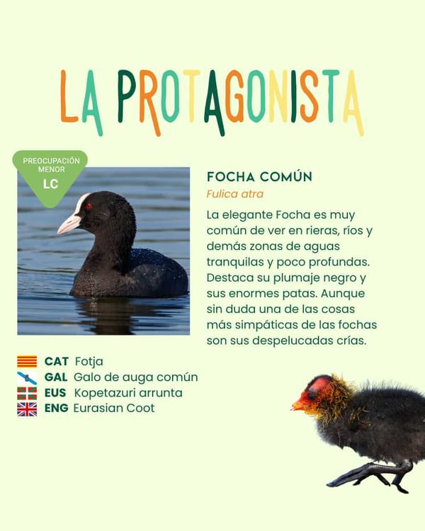 Lámina de la colección "Las 4 estaciones en el humedal" En este caso, en invierno, encontramos una focha común (Fulica atra) a punto de echarse a nadar en las frías aguas del humedal.
